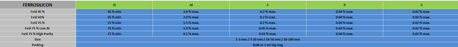 Ferro Silicon is a universal " heat-blocker" used in the production of carbon and stainless steels, this additive is used with other ferro alloys in the desoxdising process of steel, as well as in the production of silicon itself, it is also used in the production of cast iron, as it can accelerate graphitisation, Ferro Silicon replaces the need for ferro manganese, and calcium silicides in the manufacturing process.